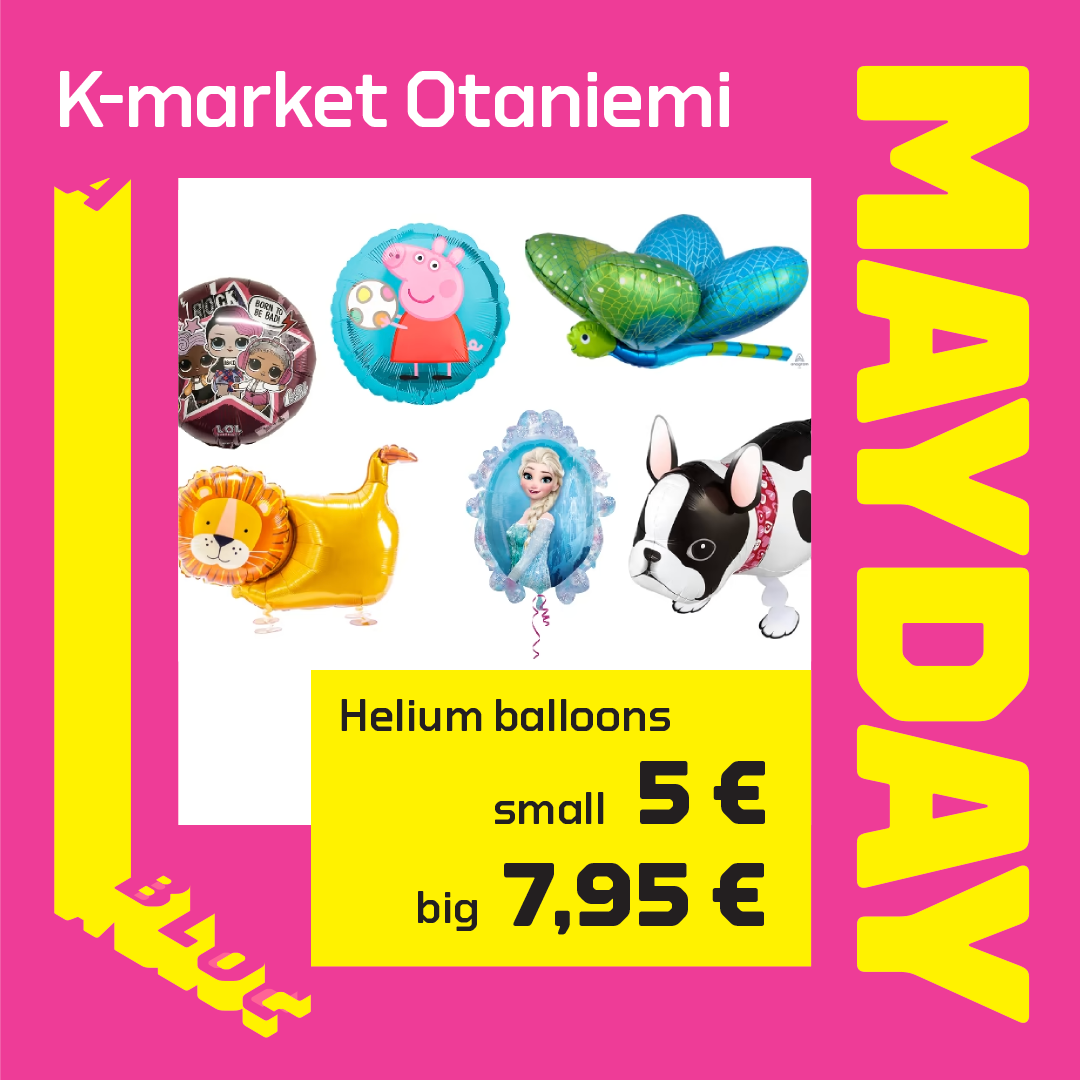 Shopping centres A  Bloc and A Blanc are participating in the Vappu shenanigans in the Otaniemi campus with the Mayday campaign. It’s time of good offers and unique MayDay atmosphere!