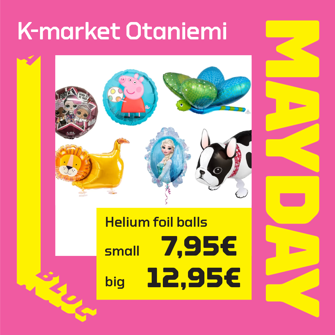 Otaniemen palvelukeskittymät kauppakeskus A Bloc ja ostoskeskus A Blanc, osallistuvat kampuksen vappuhulinaan Mayday –kampanjalla. Mayday on hyvien tarjouksien ja ainutlaatuisen vapputunnelman aikaa!